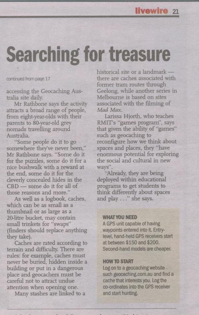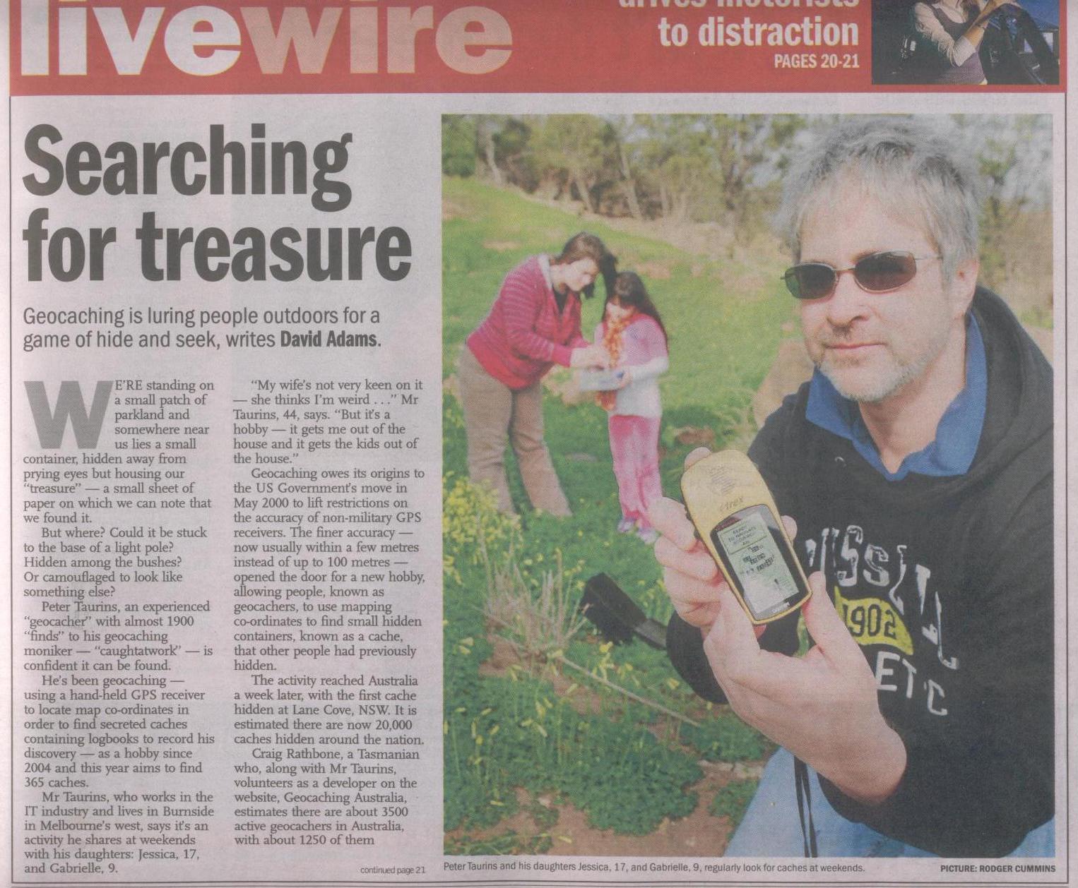 Great one page article, describing the thrill of the hunt from the reporters point of view with readers directed to Geocaching Australia for more information!
